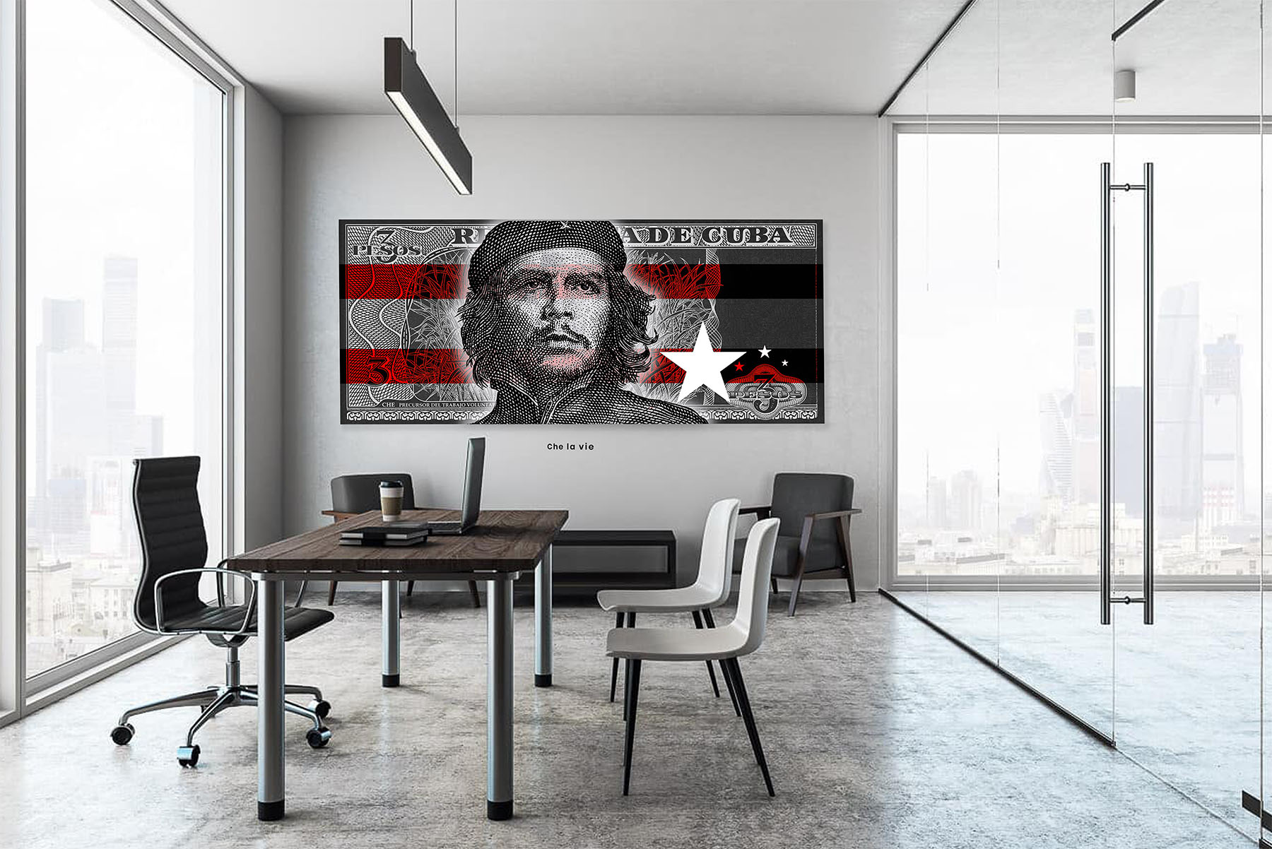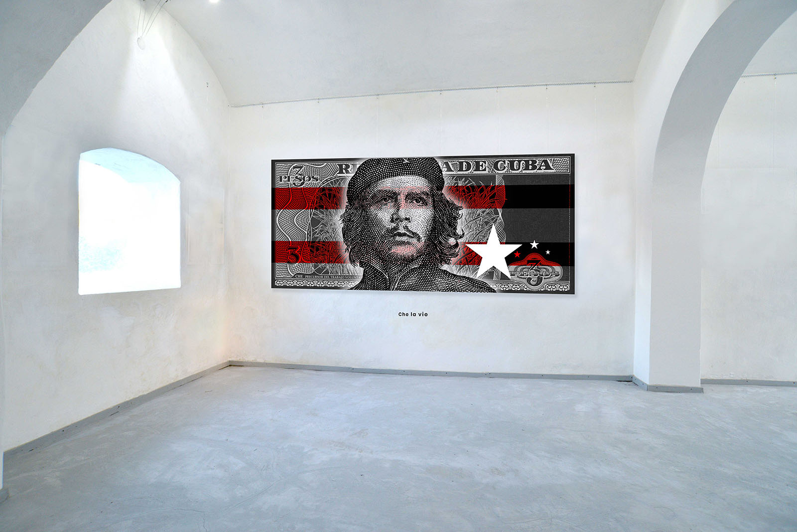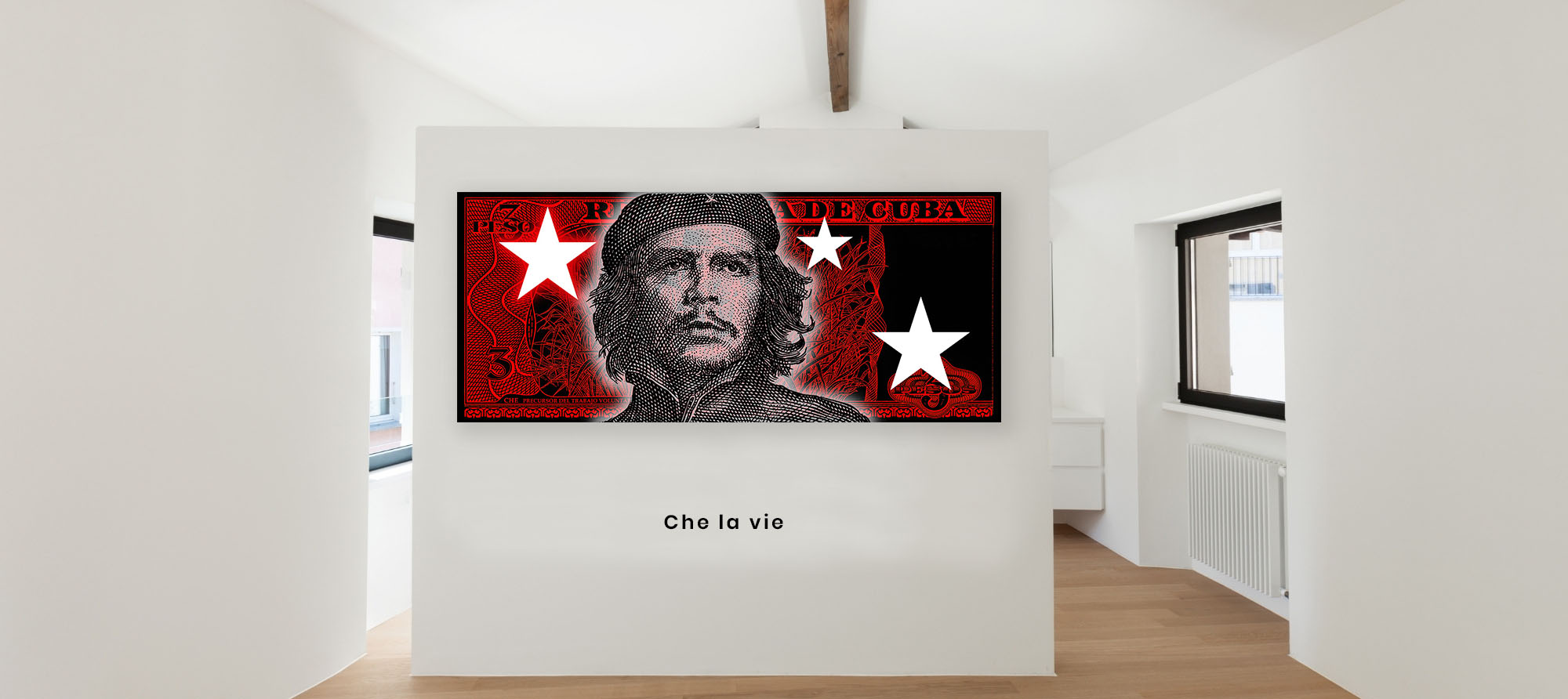 Das Kunstprojekt „CHE LA VIE“ von Frankreichts hinterfragt die untrennbare Verbindung zwischen Kunst, Kapital und Leben. Durch die Umwandlung der Banknote mit dem Portrait von Che Guevara in Kunstwerke, entlarvt der Künstler die Manipulation und Zirkularität des Kapitalismus. Die Transformation von Geld zu Kunst und wieder zurück zu Kapital verdeutlicht die enge Verflechtung von Marktmechanismen und künstlerischem Ausdruck. Besonders provokant ist die ironische Nutzung von Guevaras Bild, das vom revolutionären Symbol zur kommerziellen Ware wird. Das Projekt stellt die Frage, ob Kunst wirklich ein Gegenpol zum Kapitalismus sein kann oder nur eine weitere Form des Kapitalismus in seiner reinsten Form darstellt.